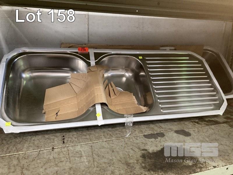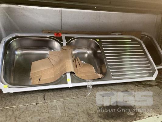 2 x STAINLESS STEEL TWIN BOWL SINKS, 123cm