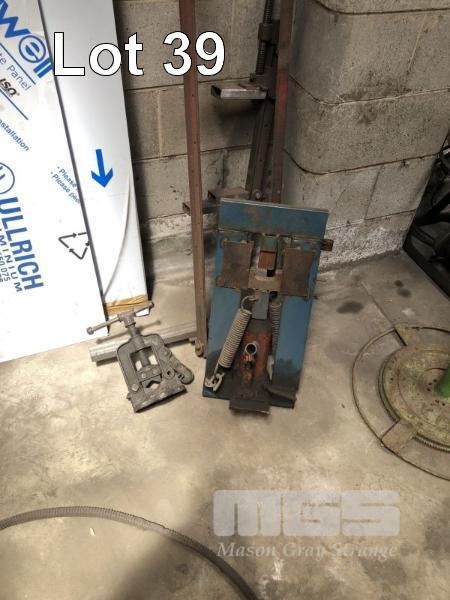 3 x ASSORTED JIG CLAMPS, HYDRAULIC C SECTION PRESS, PIPE VICE