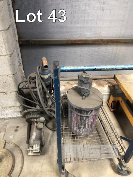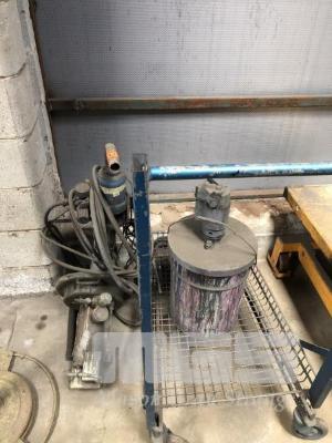 3 x ASSORTED AIRLESS SPRAY GUN PUMPS & FABRICATED TROLLEY