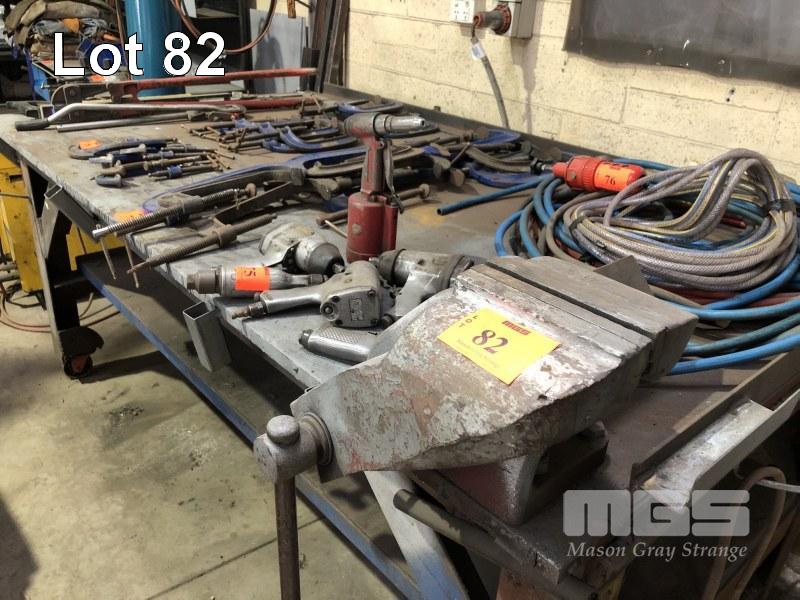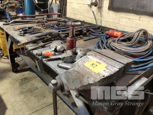 PLATE TOP WELDING BENCH, 2200 x 1200 x 25mm THICK, MOBILE BASE WITH 150mm DAWN OFFSET VICE