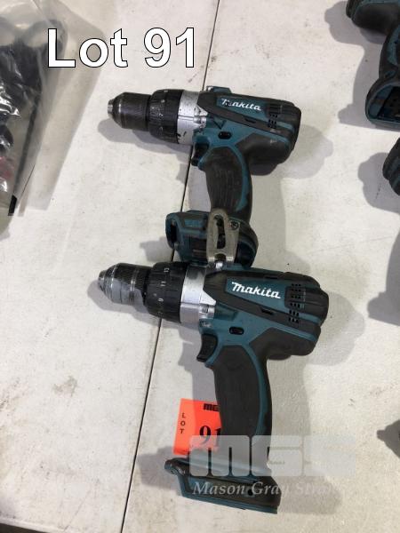 2 x MAKITA CORDLESS DRILLS, 18v WORKING, NO BATTERIES