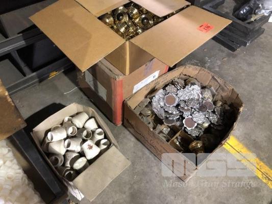 4 x BOXES ASSORTED BED KNOBS, PLUS CONTENTS OF TOP SHELF