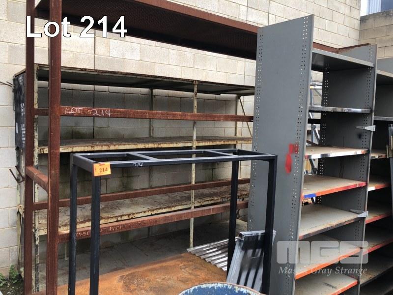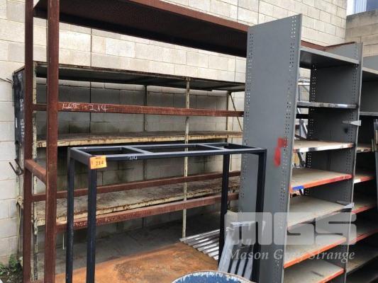4 x ASSORTED TUBE STEEL & BRWNBUILT SHELVING & RACKS ON WALL