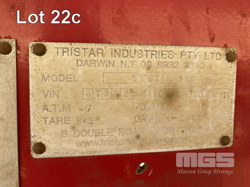 2012 TRISTAR SIDE TIPPER VIN / CHASSIS: 6T9T25NT0C2NUM181 WHITE, HYDRAULIC LIDS, BPW AXLES, SPRING SUSPENSION, R/T RATED 50MM KING PIN,