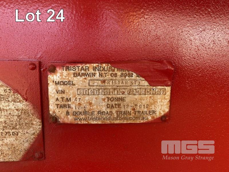 2012 TRI-STAR DOOR TIPPER VIN / CHASSIS: 6T9T25NT0C2NUM207 WHITE, HYDRAULIC LIDS, FULL AIR SUSPENSION, R/T RATED 50MM KING PIN,