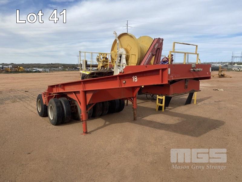 DRAKE QUAD AXLE WIDENING DECK LOW LOADER REG: Z5 31 46 HYDRAULIC RAMPS HYDRAULICS POWERED BY SINGLE CYLINDER PETROL ENGINE WITH SIDE LEVER CONTROLS PLUS DRAKE BOGEY DOLLY 50MM KING PIN 2 x ROWS OF 8 NO COMPLIANCE PLATE S/NO: A1763