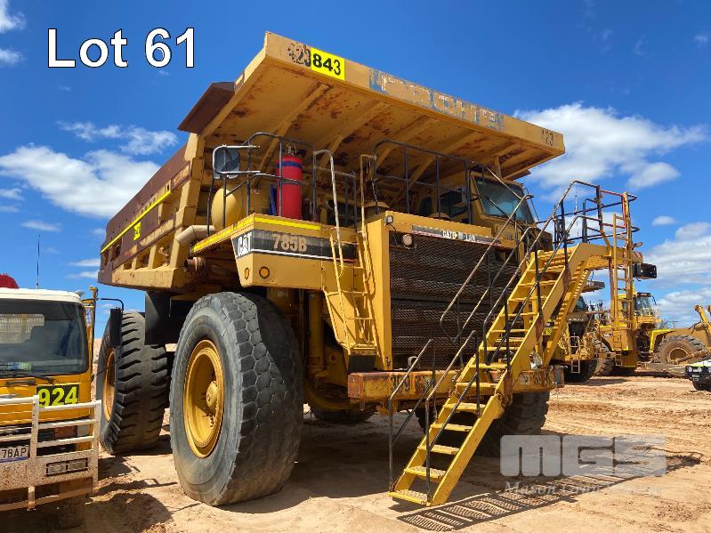 1997 CATERPILLAR 785B DUMP TRUCK VIN: 6HK00757 HOURS: 69,088 ON STANDUP RUBBER, MAINTENANCE HISTORY AVAILABLE ELECTRIC ACCESS LADDER, FAST FUEL FILL, FIRE SUPPRESSION, EXTENDED HUNGRY BOARDS, BRAKES AND REPAIRS LTR (LOCATED AT SNAPPER MINE)