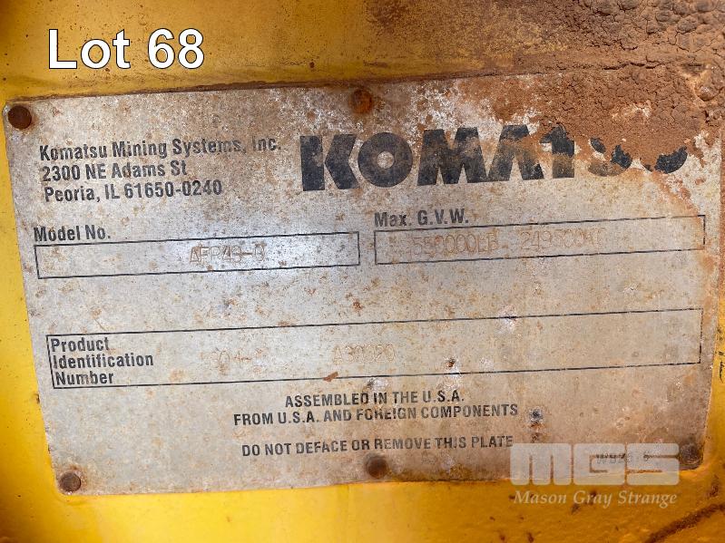 KOMATSU 530M DUMP TRUCK VIN: A30020 HOURS: 54,129 ENGINE FAILURE, TRANSMISSION AND DRIVELINE COMPLETE (LOCATED AT SNAPPER MINE)