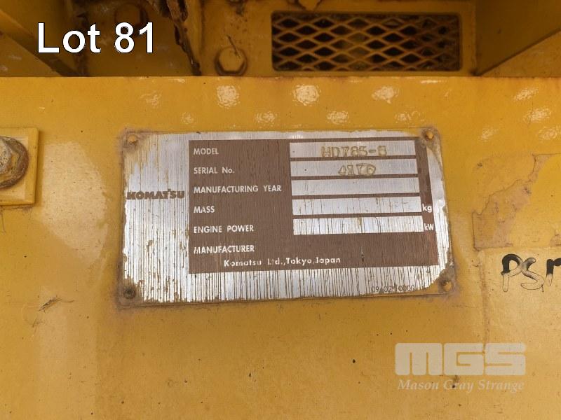 KOMATSU 785-5 DUMP TRUCK VIN: 4176 NOT RUNNING, NO FUEL PUMPS. ENGINE TRANSMISSION & DRIVELINE COMPLETE (NO PAPERS, NO OWNER'S MANUAL, NO SERVICE BOOKS)