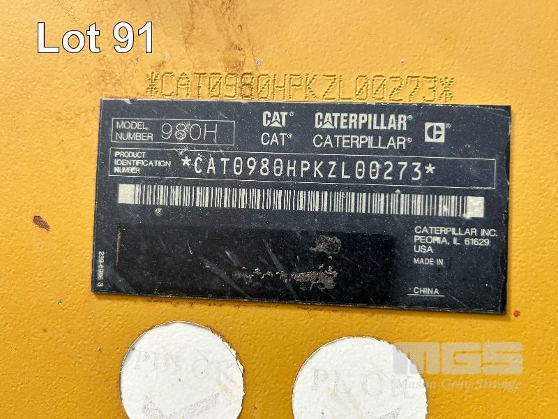 2011 CATERPILLER 980H WHEEL LOADER HOURS: 33,425 FIRE SUPPRESSION, LOAD CELL, GP BUCKET, A/C ROPS CABIN MAINTENANCE HISTORY AVAILABLE