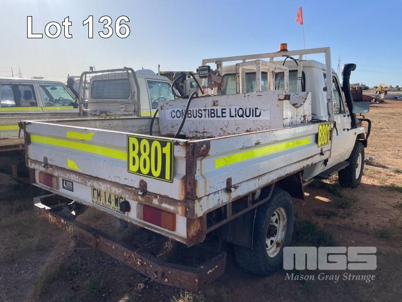 2001 TOYOTA LANDCRUISER SINGLE CAB UTILITY REG: CM 14 WC VIN: JTELB71J0707013810 ODO: 488,330kms 6 CYLINDER, MANUAL TRANSMISSION, UNIT NO: 801 12L FUEL TANK & PUMP TAIL SHAFT IN CABIN DEFECTS TO BE CONFIRMED