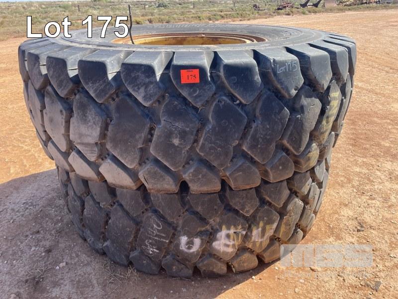 2 PLANT TYRES & RIMS, BRIDGESTONE 24.00 R35S