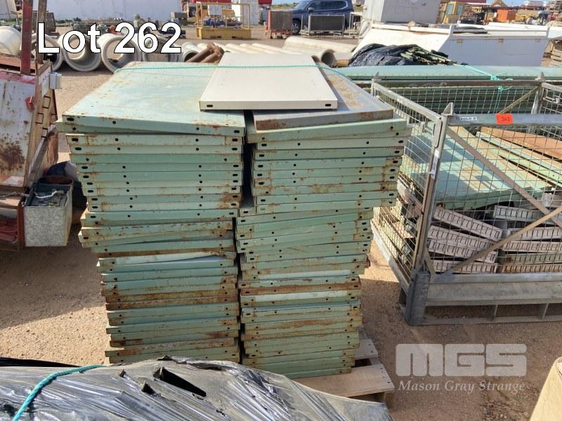 15 x PALLETS EX GOV STEEL SHELVING, 900 x 450mm,UPRIGHTS & PARTS TRAYS, 500 SHELVES APPROX