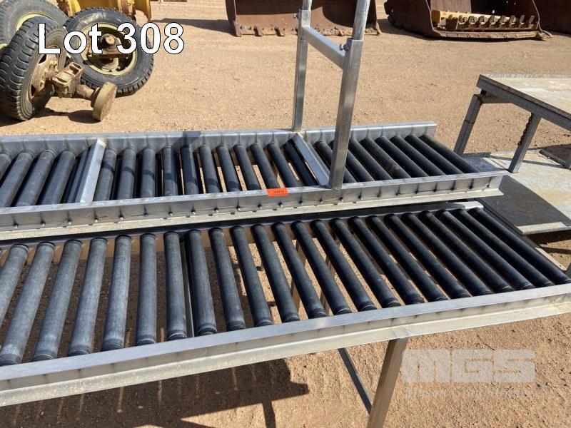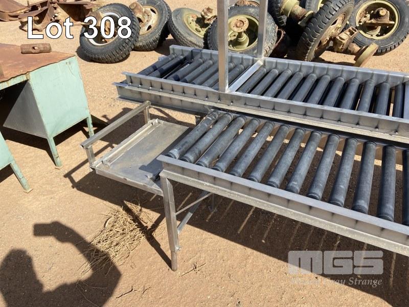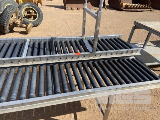 3 x STAINLESS STEEL CONVEYOR ROLLERS, 300 x 450mm, NYLON ROLLERS, ADJUSTABLE LEGS