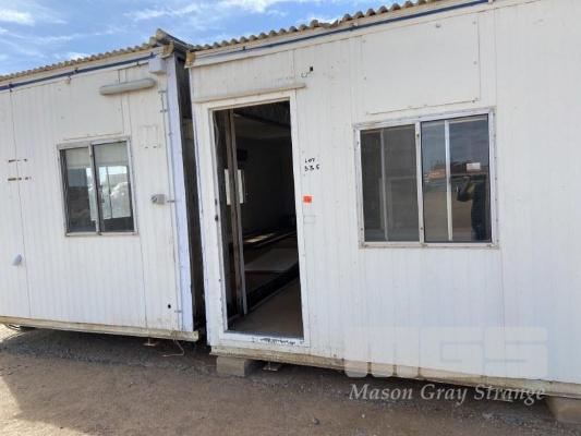 TRANSPORTABLE OFFICE/CRIB ROOM, 2 PIECE 12 x 6m TOTAL WEB STEEL INNER FRAME, SPLIT END OFFICES & A/C'S WITH GPO'S & LIGHTING