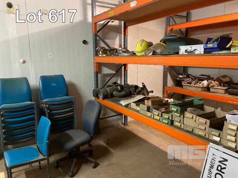 HOSE FITTINGS, NUTS, BOLTS, PUMP, HOSE CLAMPS, SAFETY LIGHTS & CHAIRS CONTENTS RACKS