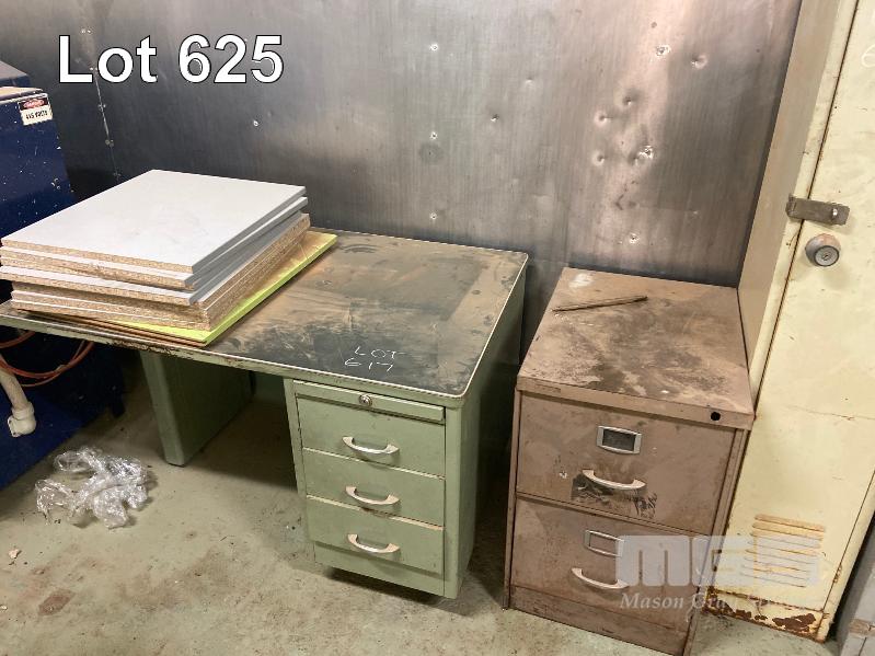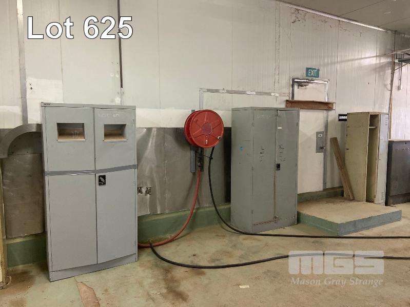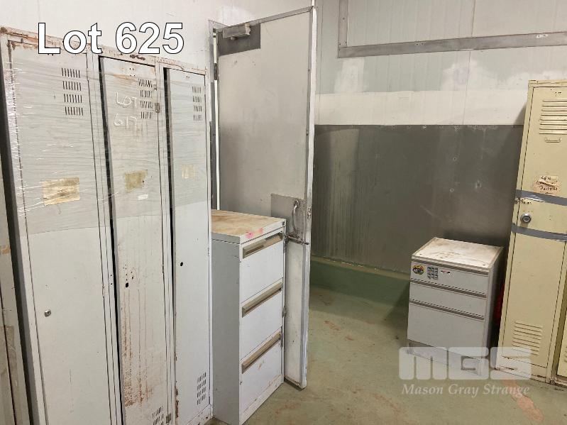 DESK, 3 x 2 DOOR STOCK , 2 x FILING CABINETS, 17 LOCKERS