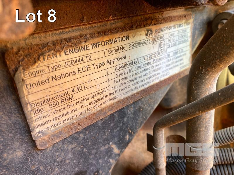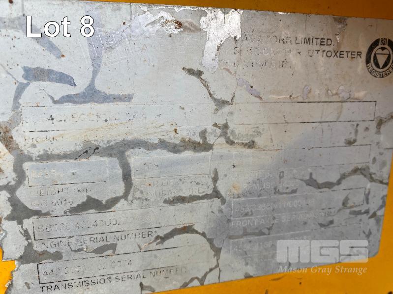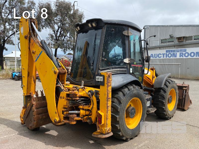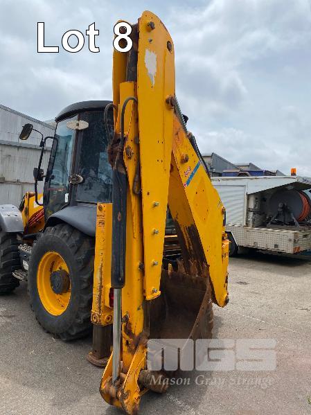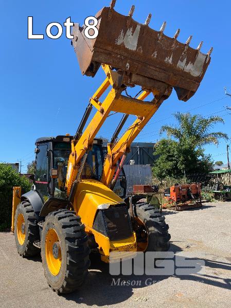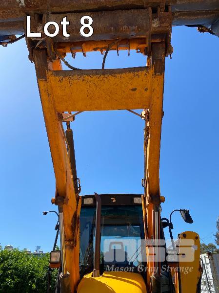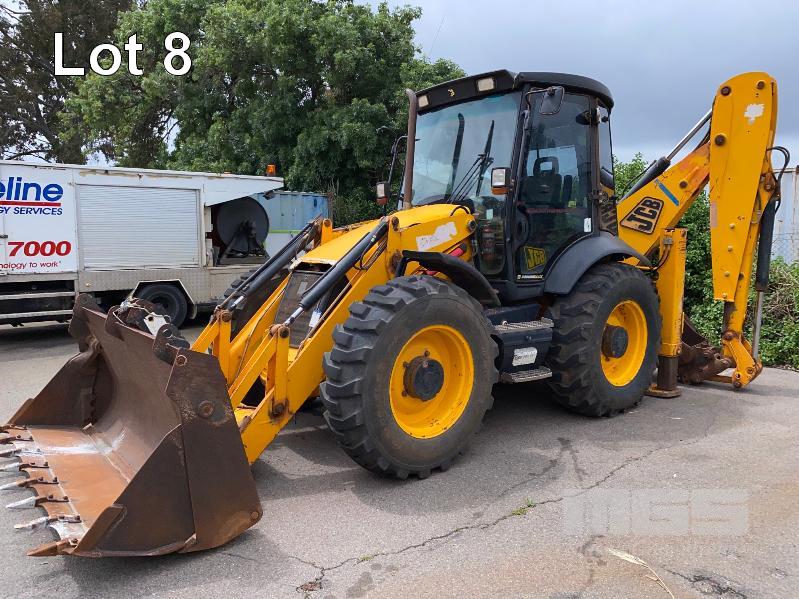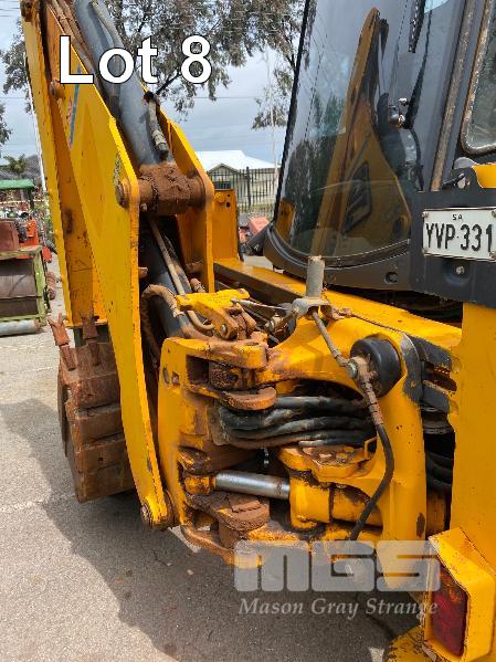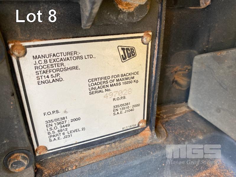 JCB 4CXPC BACKHOE LOADER REG: YVP 331 (SA) PIN: JCB4CXPCC81337160 HOURS: 18,700hours SHOWING JCB 4 CYLINDER TURBO DIESEL TYPE: JCB444T2, 74kw 4 WHEEL STEERING 4 SPEED POWER SHIFT TRANS ROPS/FOPS, A/C CAB BATTERY ISOLATOR , TURBO TIMER, QUICK HITCH, TYRE SIZE: 16.8-28 FITTED WITH 4 IN 1 BUCKET, 2300 x 1000mm & TRENCHING BUCKET, 600mm WITH SPARE FILTERS, SEALS, ETC. NOTE: PIN RETAINERS MISSING & WORN BUSHES. KEY # 45