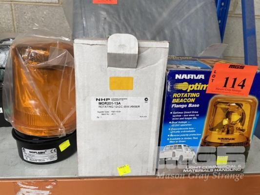 2 x ROTARY WARNING BEACON LIGHTS, NAVARA, 12V & 12V-24V DUAL VOLTAGE