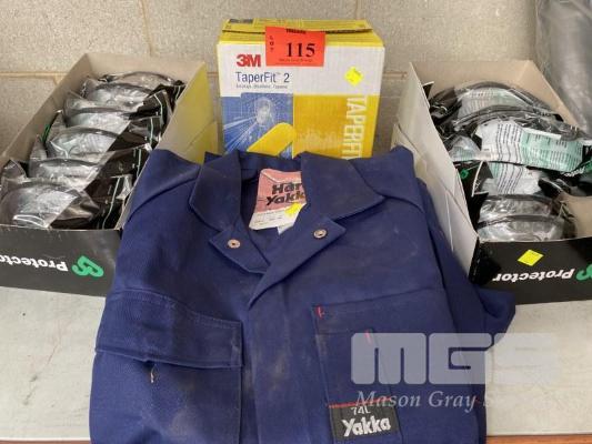 20 x PAIRS SAFETY GLASSES, PROTECTOR, 1 x BOX EAR PLUGS & HARD YAKKA OVERALLS, 74L
