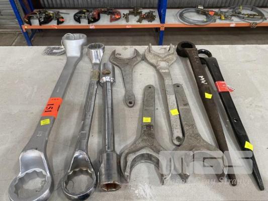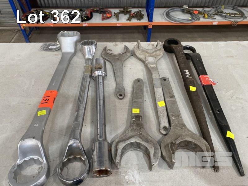 2 x RING SPANNERS, 60 & 55mm & 1 1/8" & 1 1/4", SOCKET BAR, 1/4" & 15/16", POINT HANDLE RING SPANNERS, 1 5/8" & 41mm