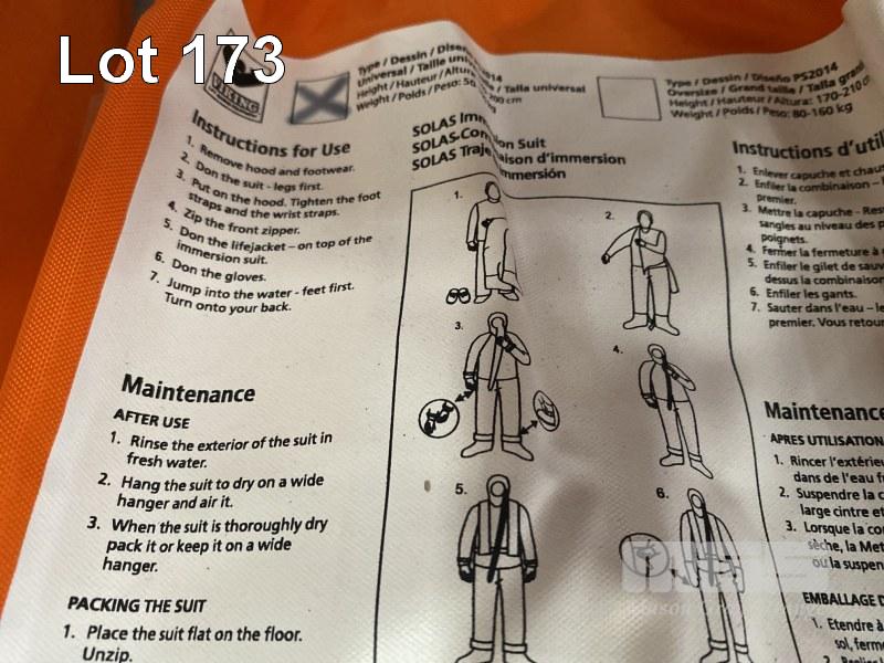 2 x VIKING SOLAS IMMERSION SUITS MOD: PS2014 DOM: 2016 SIZE: UNIVERSAL HEIGHT: 140-200cm WEIGHT: 50-100kg HIGH VISIBILITY YELLOW REFLECTIVE TAPE FOR HIGH VISIBILITY IN THE DARK THERMAL PROTECTION IN COLD WINTER IN CARRY BAG