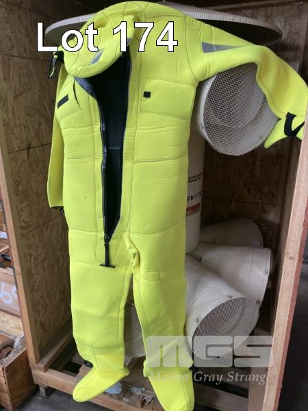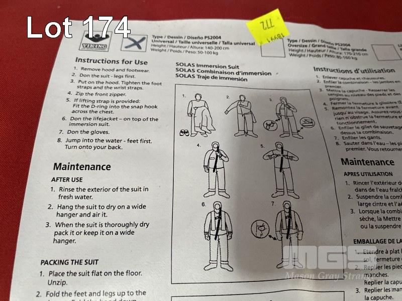 3 x VIKING SOLAS IMMERSION SUITS MOD: PS2004 DOM: 2016 SIZE: UNIVERSAL HEIGHT: 140-200cm WEIGHT: 50-100kg HIGH VISIBILITY YELLOW REFLECTIVE TAPE FOR HIGH VISIBILITY IN THE DARK THERMAL PROTECTION IN COLD WINTER IN CARRY BAG