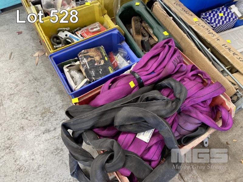 QUANTITY FASTENERS, LIFTING SLINGS, TOOLS, CLAMPS, FITTINGS, D-SHACKLES, ETC,