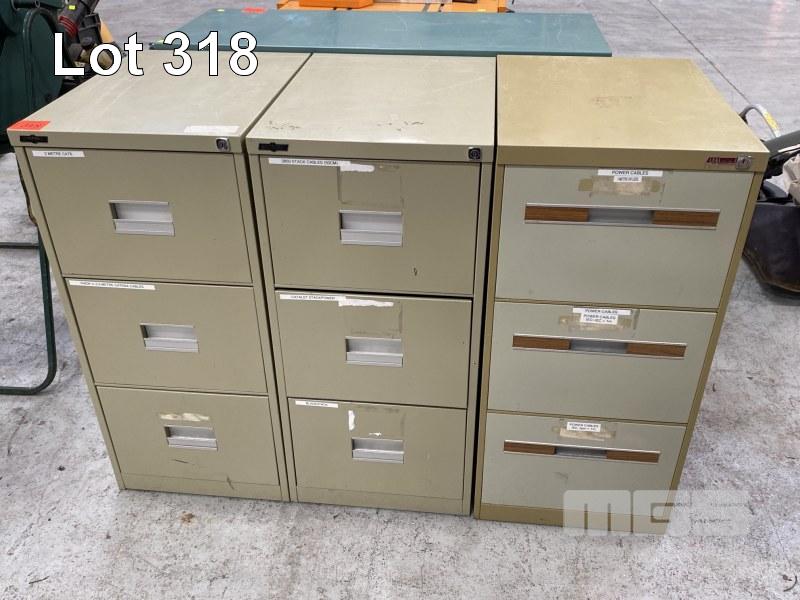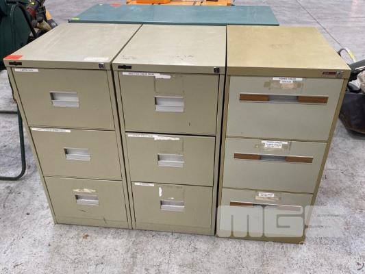 3 x 3 DRAWER FILING CABINETS, GREEN STEEL
