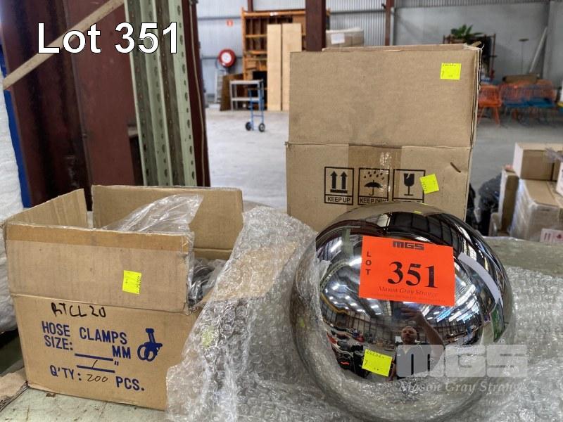 STAINLESS STEEL REFLECTIVE DISPLAY BALL, 200mm & 1 x BOX (200) NOSE CLAMPS, 1"