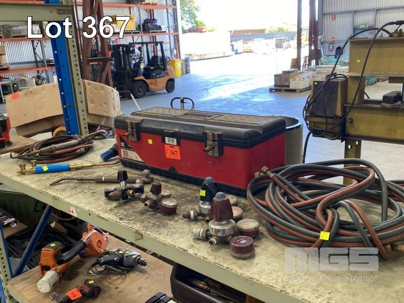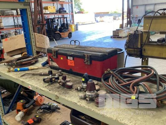 OXY ACETYLENE WELDING KIT INC 2 x HOSES, 3 x TORCHES, 5 x REGS INC ARGON & TOOL BOX ZAG, 26" METAL
