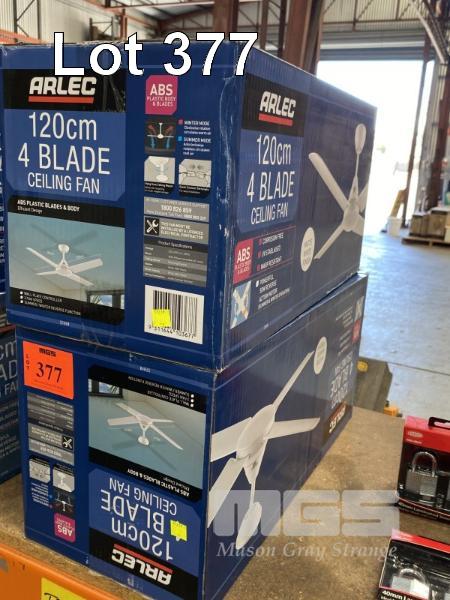 2 x CEILING FANS, ARLEC, 120cm, 4 BLADE, WHITE