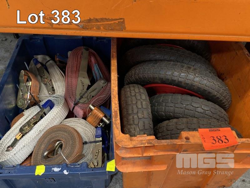 SIZES: 3.00-8 (16x3), ETC & QUANTITY RATCHET STRAPS, 2 x TUBS