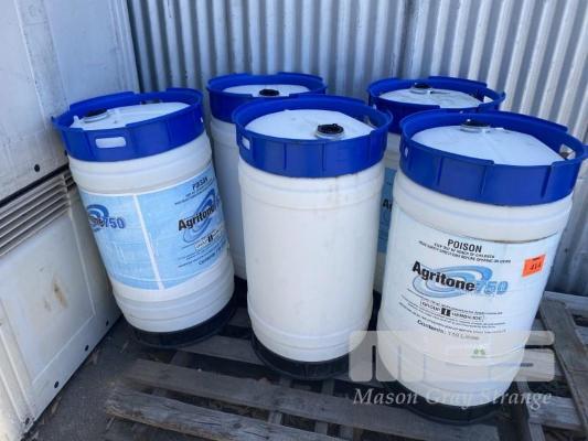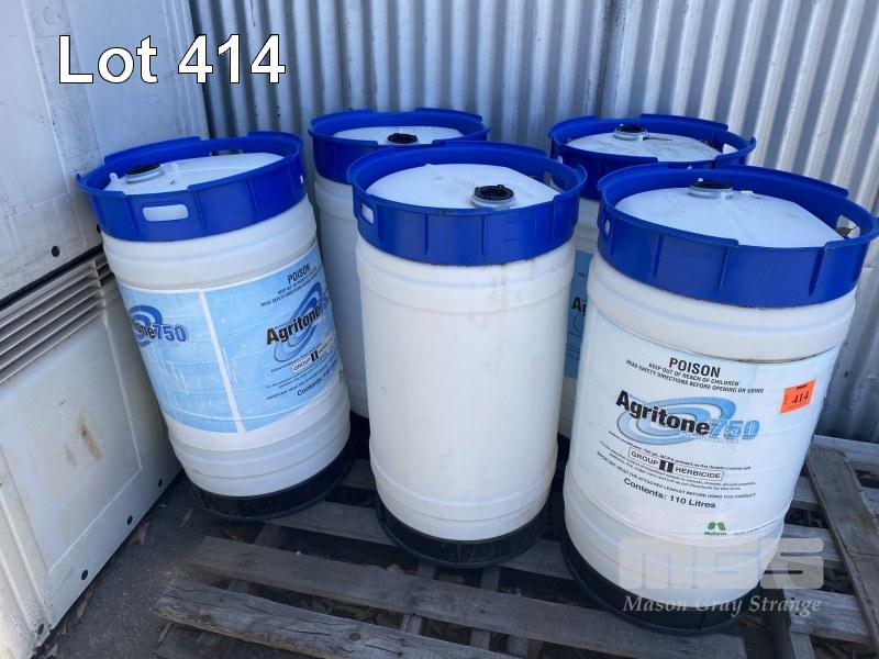 5 x 110 LITRE PLASTIC DRUMS, POLY BLUE/WHITE