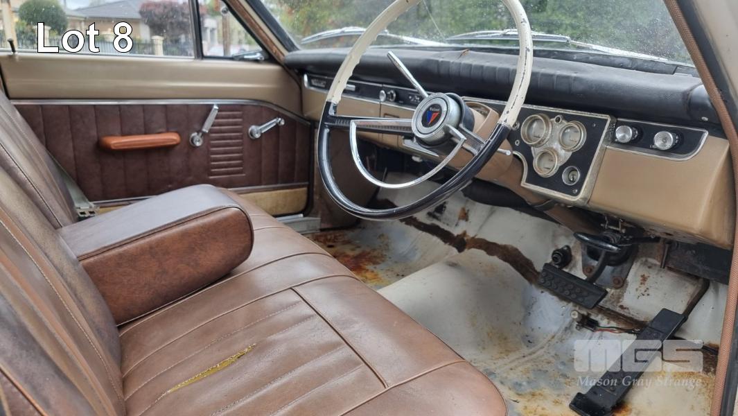1965 CHRYSLER VALIANT AP6 REGAL SEDAN REG: 452 734 VIN: AE-172270C ODO: 81,257miles 225Ci, 3 SPEED AUTOMATIC TRANSMISSION, PETROL, ALABASTER, 4 DOORS, 5 SEAT, RWD COMPLETE FRONT END & STEERING REBUILT. NEW BRAKES, MASTER CYLINDER, WHEEL CYLINDERS, DRUM MACHINING & LINING ENGINE & TRANSMSSION RUNS SMOOTH MILEAGE THOUGHT TO BE GENUINE REBUILT CARBURETTOR NEW EXHAUST SYSTEM CAR WAS COVERED UNDER TARPS SINCE 1993 RUST IN USUAL SPOTS, BUT NOT STRUCTURAL IDEAL RAT ROD (WITH 1 KEY/S, WITH OWNER'S MANUAL, WITH SERVICE BOOKS) CONDITION: RIGHT REAR QUARTER - LOWER DAMAGE-REPAIRABLE