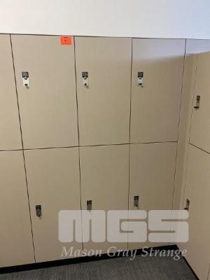 INTERLOC TIMBER LAMINATE KEY OPERATED LOCKERS, TOP & BOTTOM LOCKER SETS TOP LOCKER: 400 x 760 x 470mm BOTTOM LOCKER: 400 x 1000 x 470mm 6 x LOCKERS TOTAL WITH KEYS