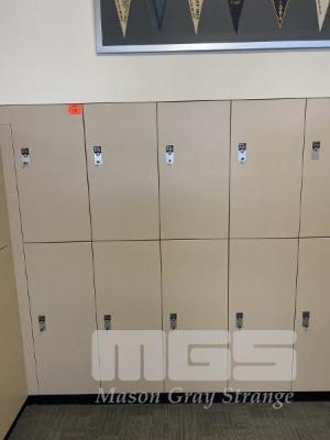 INTERLOC TIMBER LAMINATE KEY OPERATED LOCKERS, TOP & BOTTOM LOCKER SETS TOP LOCKER: 400 x 760 x 470mm BOTTOM LOCKER: 400 x 1000 x 470mm 8 x LOCKERS TOTAL WITH KEYS