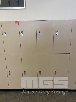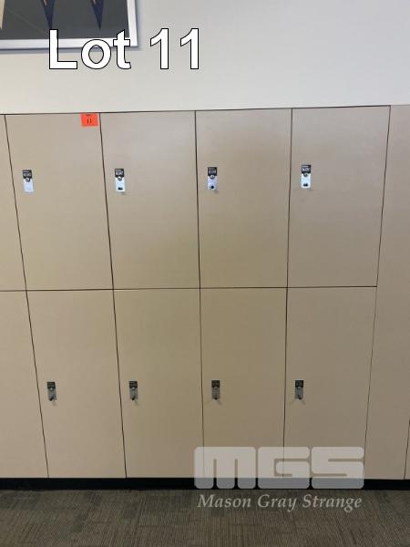 INTERLOC TIMBER LAMINATE KEY OPERATED LOCKERS, TOP & BOTTOM LOCKER SETS TOP LOCKER: 400 x 760 x 470mm BOTTOM LOCKER: 400 x 1000 x 470mm 8 x LOCKERS TOTAL WITH KEYS