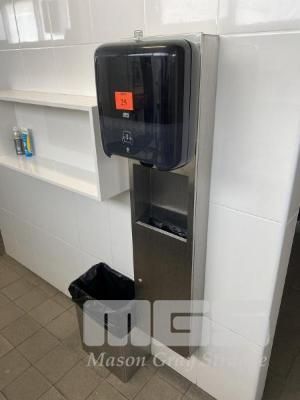 TORK WALL MOUNT PAPER TOWEL DISPENSER (WITH KEY) WITH STAINLESS STEEL WALL MOUNT BIN UNIT