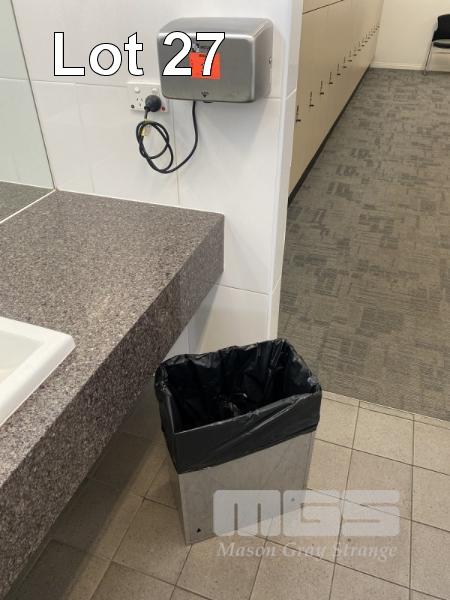 METLAM 240v HAND DRYER & SMALL STAINLESS STEEL BIN