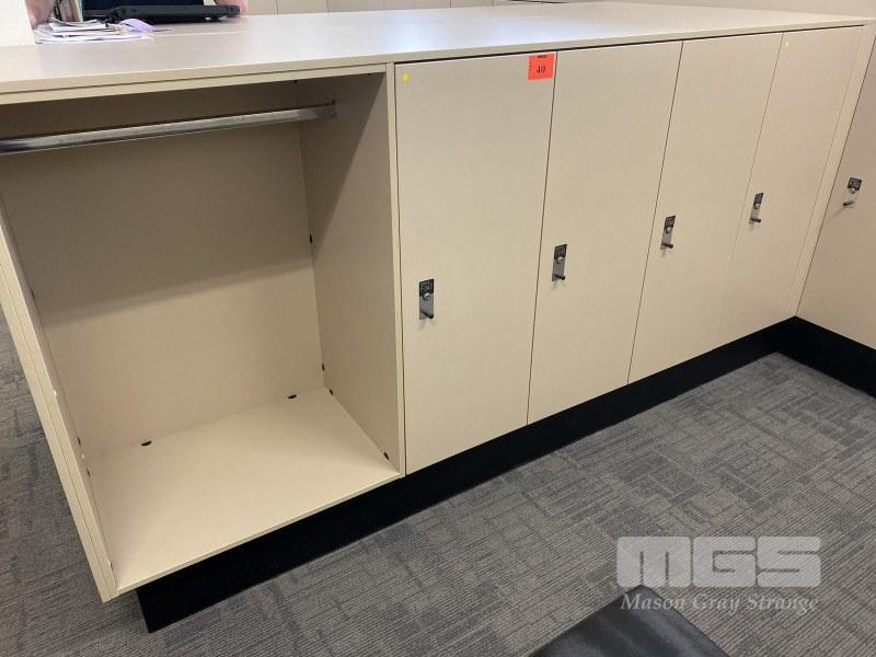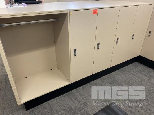 INTERLOC TIMBER LAMINATE KEY OPERATED LOCKERS 1000 x 400mm 4 x LOCKERS TOTAL WITH KEYS PLUS MATCHING COAT STORAGE, 1000 x 1800mm