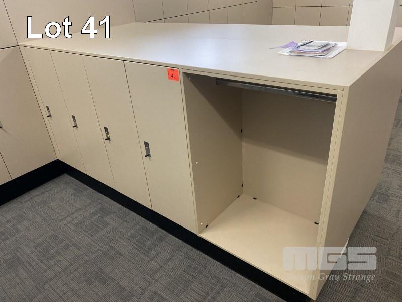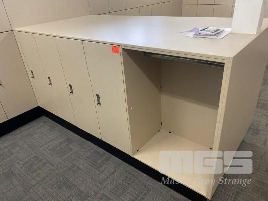 INTERLOC TIMBER LAMINATE KEY OPERATED LOCKERS 1000 x 400mm 4 x LOCKERS TOTAL WITH KEYS PLUS MATCHING COAT STORAGE, 1000 x 1800mm