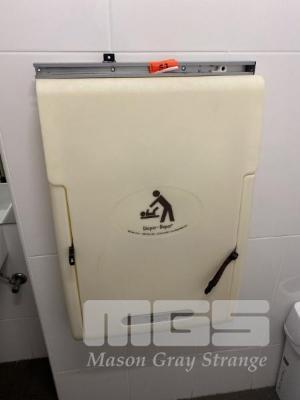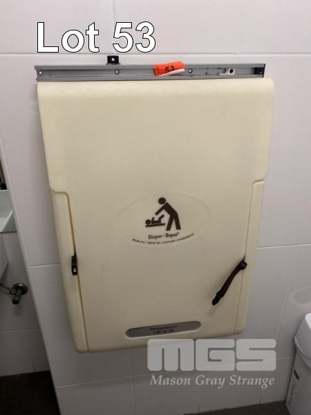 DIPER DEPOT BABY CHANGE TABLE, WALL MOUNT PLUS 2 x 'FRESH & CLEAN' SANITARY BINS