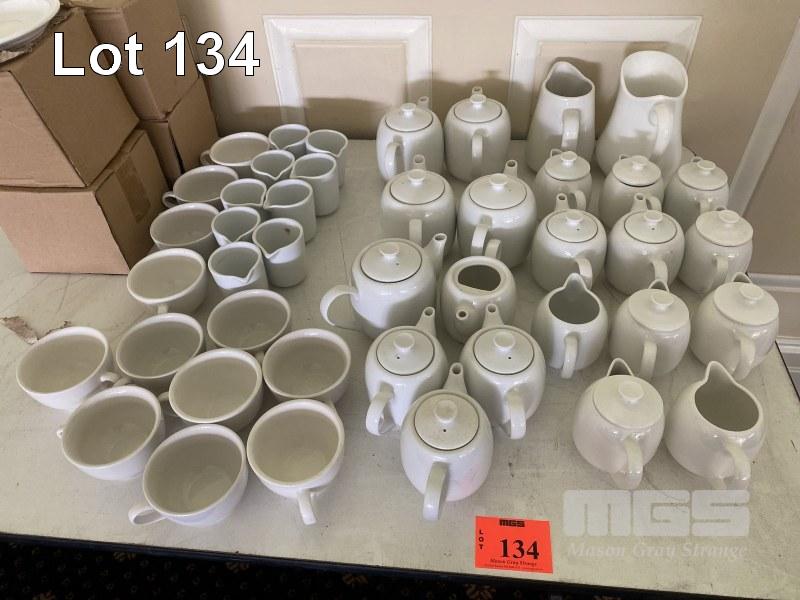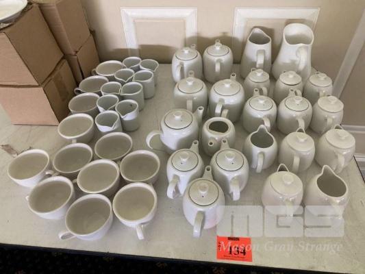 COFFEE & TEA SET INCLUDING, 12 x CUPS, 9 x MILK POURERS, 5 x LARGE TEA POTS, 15 x SMALL TEA POTS, 2 x MILK JUGS, 48 x SAUCERS, 150mm