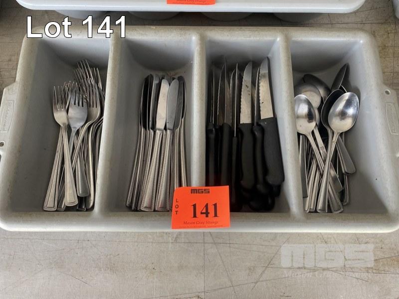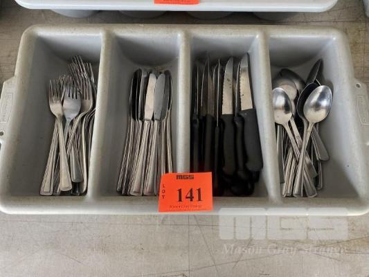 PVC CUTLERY TRAY WITH 20 x STEAK KNIVES, 20 x BUTTER KNIVES, 20 x SPOONS, 20 x FORKS