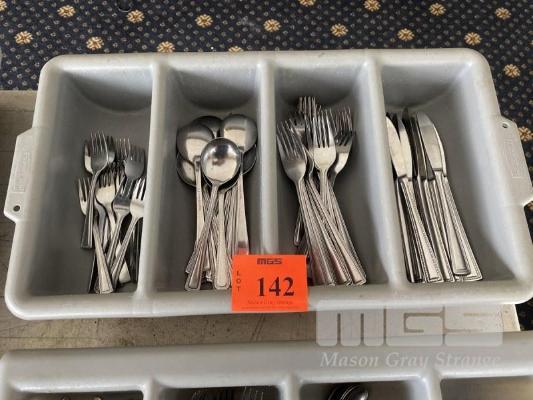 PVC CUTLERY TRAY WITH 20 x FORKS, 20 x BUTTER KNIVES, 20 x SPOONS, 20 x DESSERT FORKS