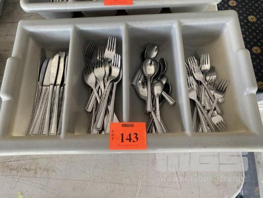 PVC CUTLERY TRAY WITH 20 x FORKS, 20 x BUTTER KNIVES, 20 x DESSERT SPOONS, 20 x DESSERT FORKS