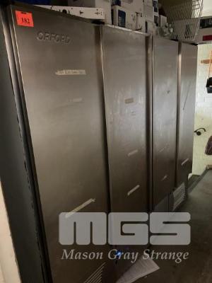ORFORD UPRIGHT CHEFS FREEZER, 4 DOOR, MODEL: SCF60A, BOTTOM MOUNT COMPRESSOR DIGITAL READOUT, 240v