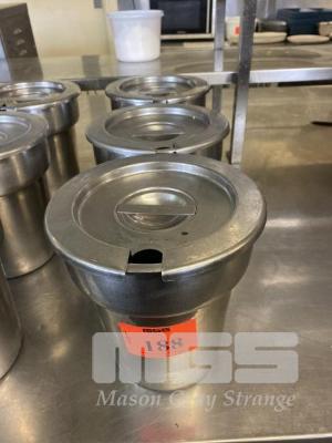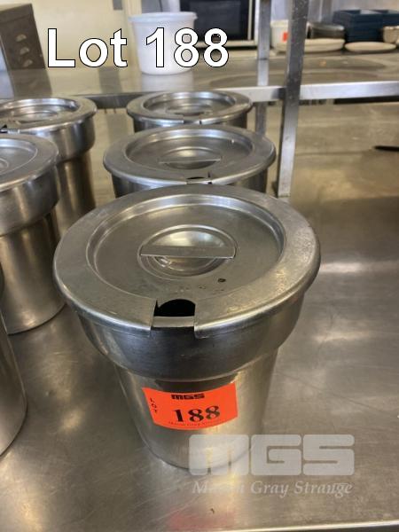 3 x STAINLESS STEEL SERVING POTS, 190mm (D)