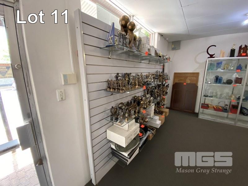 SLATWALL DISPLAY RACK, 1 x GLASS SHELVES, 2900 x 2100mm
